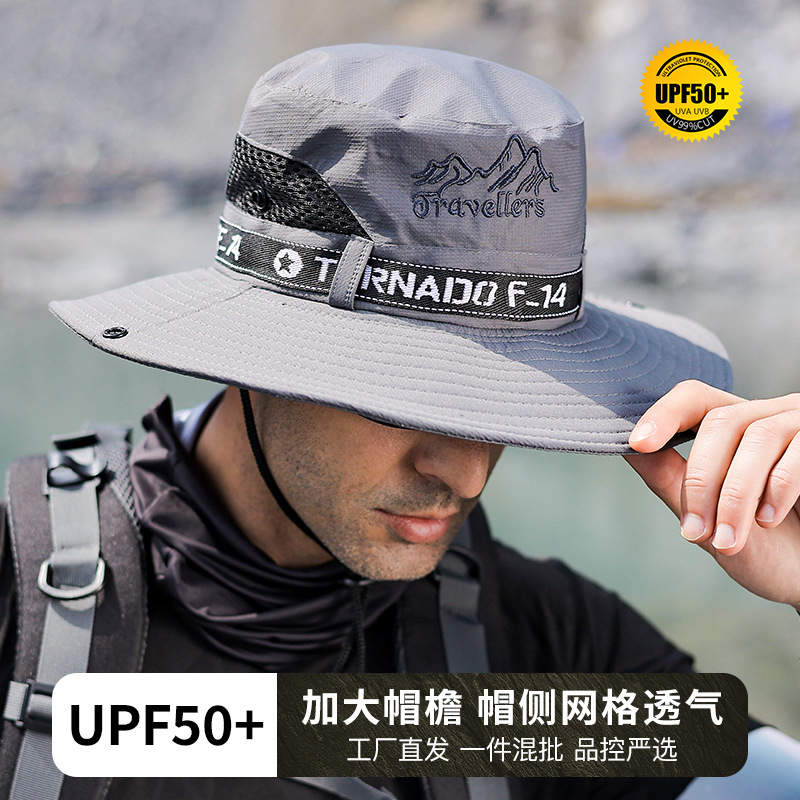 หมวกปีกกว้างบังแดดสำหรับผู้ชายหมวกทรงบักเก็ต สำหรับกลางแจ้งสวนเดินป่าตั้งแคมป์ ผ้าโพลีเอสเตอร์100%