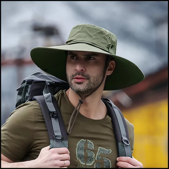 ปีกกว้างหมวกบังแดดสำหรับผู้ชายหมวกทรงบักเก็ต ทรงปีกกว้างสำหรับกลางแจ้งสวนเดินป่าตั้งแคมป์ ผ้ากันน้ำไนลอน100% หนึ่งขนาด: 58 cm, นุ่มและสบายป้องกันรังสีอัลตราไวโอเลต (UPF): >50. คุณสมบัติอื่นๆ: แห้งเร็ว,ระบายอากาศได้,แบบพกพาซาฟารีหมว