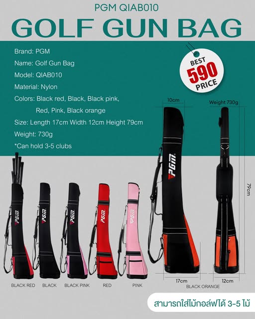 กระเป๋าใส่ไม้กอล์ฟ QIAB013 ผลิตภัณฑ์: Mini Golf Pencil Gun Bag แบรนด์ PGM รหัสสินค้า QIAB013 สี: ดำขอบแดง / ดำขอบเทา