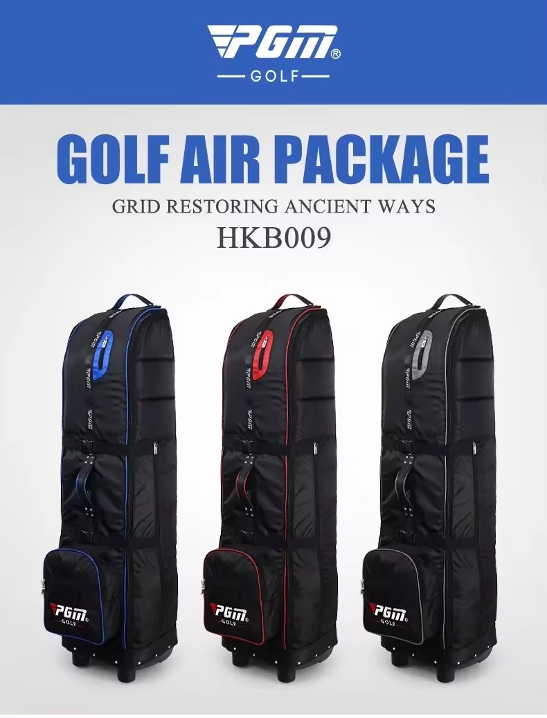 PGM HKB009 travel cover golf bag waterproof มีสีให้เลือก 3สี ดำน้ำเงิน ดำเเดง ดำเทา แบบมีล้อลาก ใช้งานง่าย ดีไซด์ออกแบบสวยงามมากๆ ครับ มีไสตล์