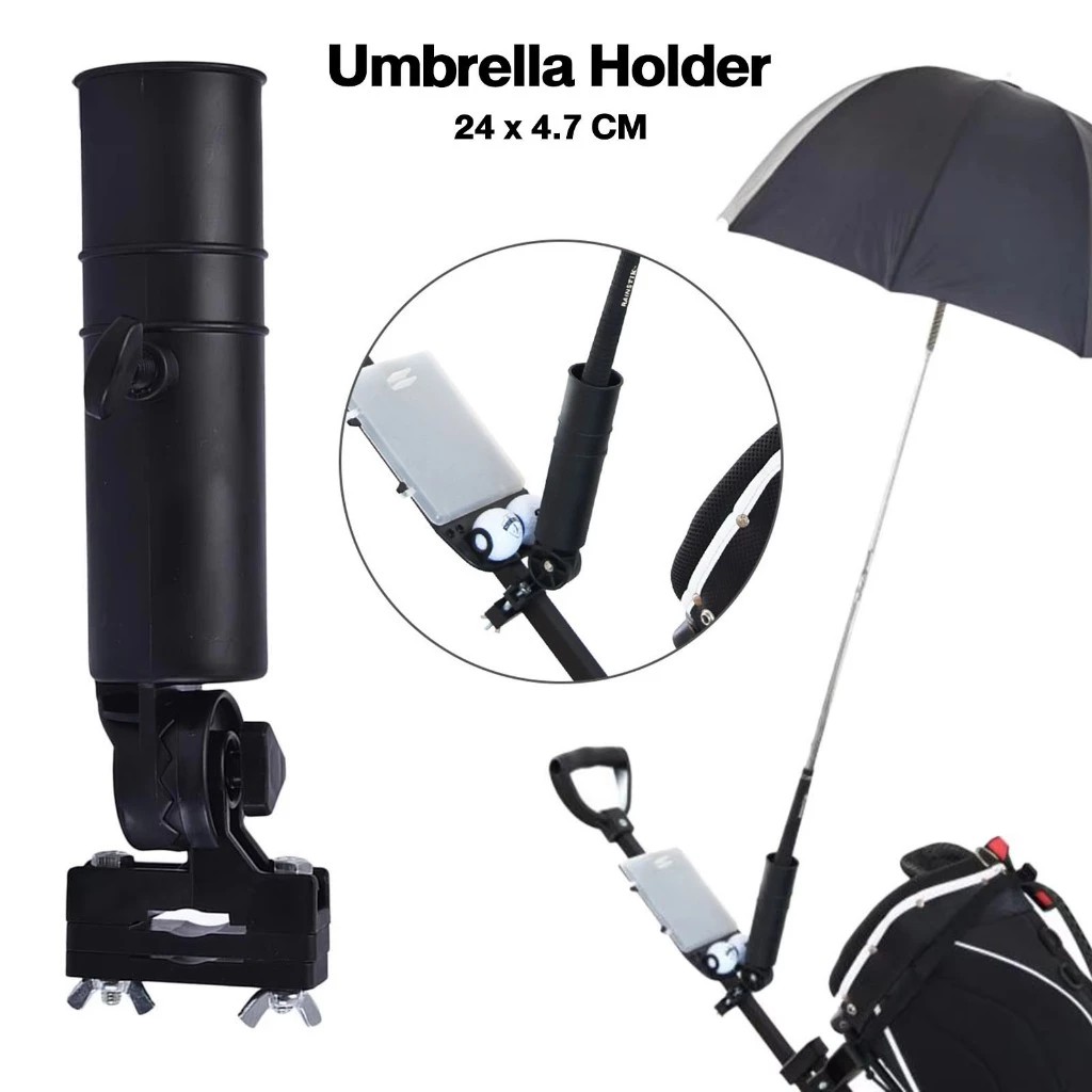 อุปกรณ์ยึดร่ม สำหรับรถเข็นกอล์ฟ Golf Push Cart Umbrella Holder Umbrella Attachment ทนทานและติดตั้งง่าย: ที่วางร่มรถกอล์ฟคุณภาพสูงแข็งแรงและทนทานมาก ง่ายต่อการติดตั้งบนมือจับรถเข็นกอล์ฟ ไม่มีแสงแดดหรือฝน: ช่วยปกป้องเครื่องมือของคุณจากแสงแดดหรือฝน แฮนด์ฟรีส