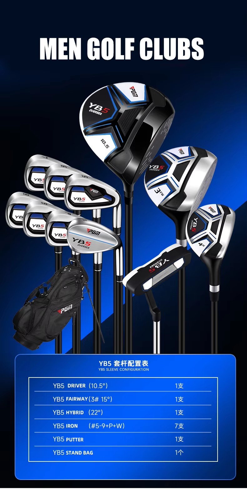 FULL SET YB5 OVERSEA BEGINNER GOLF CLUBS SET 11pcs ไม้กอล์มีการออกแบบได้สวยงาม และทำให้ตีง่าย มีน้ำหนักเบา ทุกไม้ผลิตขึ้นมาด้วยความพิถีพิถัน สวยงาม น้ำหนักสวิงเวทของทุกไม้เท่ากันไม่มีที่ติ ก้านกราไฟต์ FLEX - R ดีดนุ่มมาก ได้ระยะสุดๆ