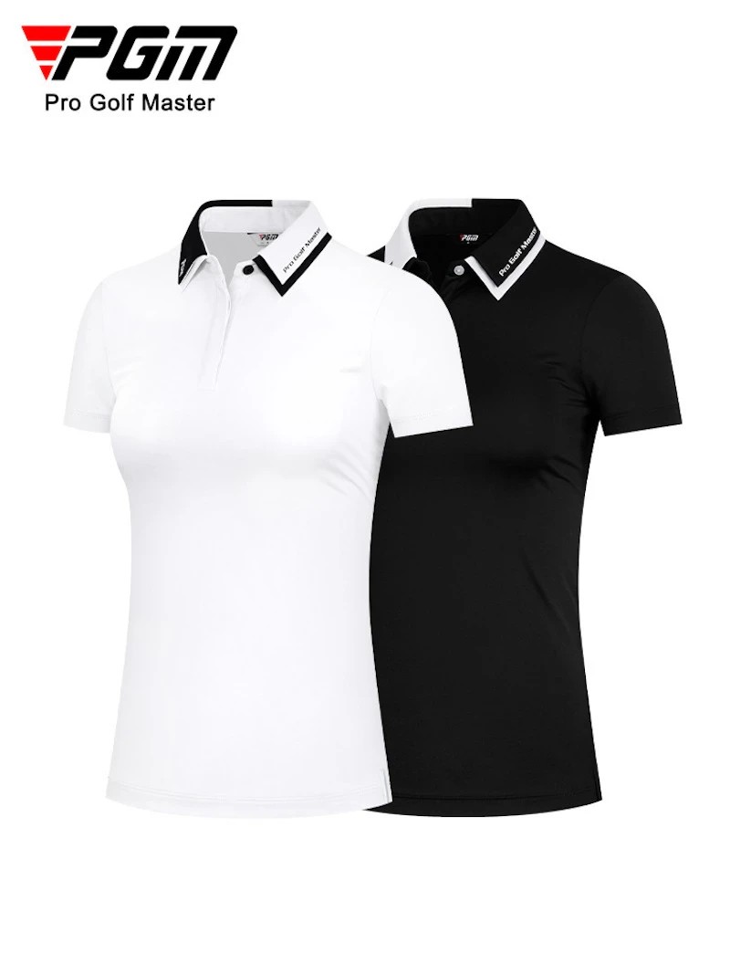 เสื้อกอล์ฟเเขนสั้น PGM Golf Women 'S ใส่สวย ใส่สบาย เนื้อผ้าดีมากเสื้อกอล์ฟ แขนสั้น สำหรับผู้หญิง สี: สีขาว/สีดำ