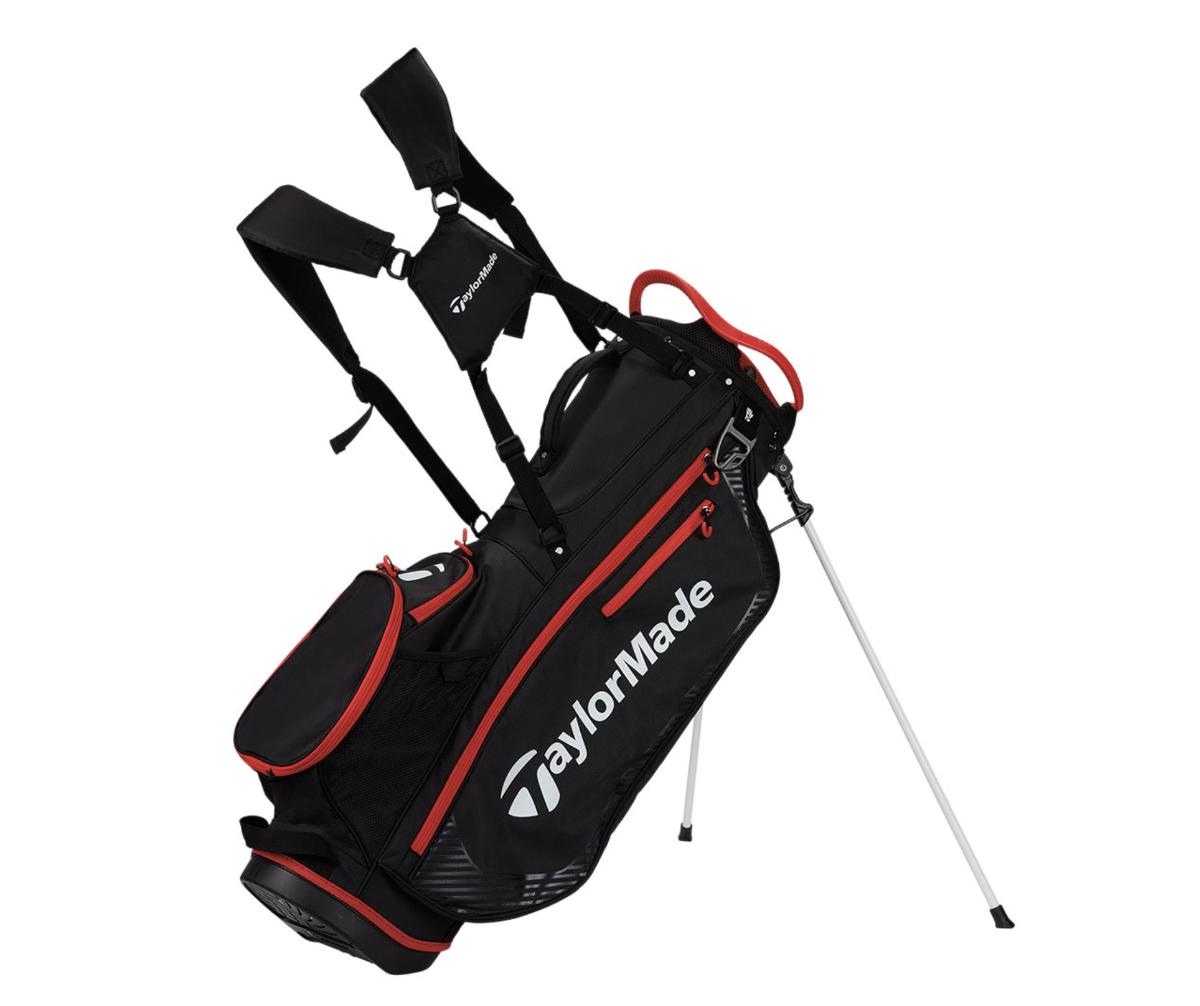 TaylorMade PRO Stand Bag BLAKRED กระเป๋าขาตั้งบนสุด 9” ด้านบน 8 ทิศทางพร้อมที่จับในตัวด้านหน้าและที่จับ 2 อัน ด้านข้างบุด้วยตาข่ายระบายอากาศสีเข้ากัน ระบบขาตั้งอัตโนมัติแบบติดตั้งสูงน้ำหนักเบา