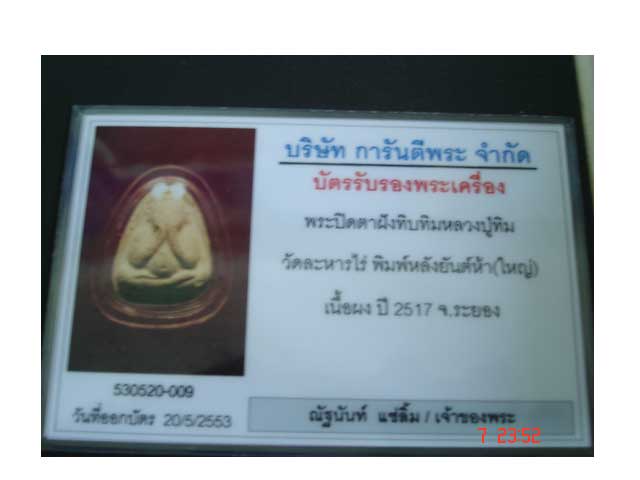 พระปิดตาหลวงปู่ทิม หลังยันต์ 5 พิมพ์เล็ก เนื้อจัดจ้าน ดูง่าย พร้อมบัตรรับรองครับ