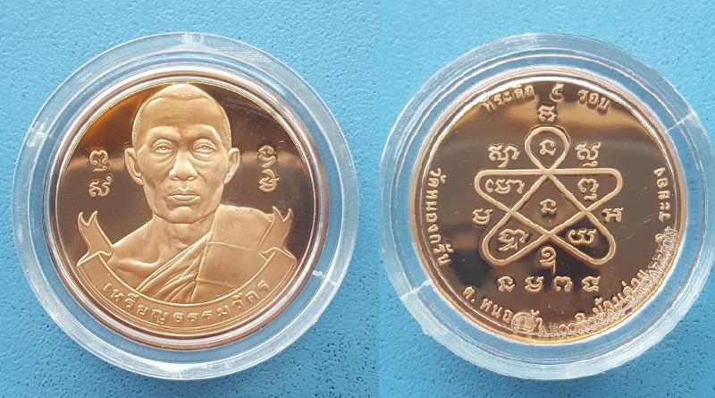 เหรีญธรรมวัตร 5 รอบ ชินบัญชร หลวงพ่อสาคร มนุญโญ วัดหนองกรับ ต.หนองบัว อ.บ้านค่าย จ.ระยอง เนื้อทองแดง