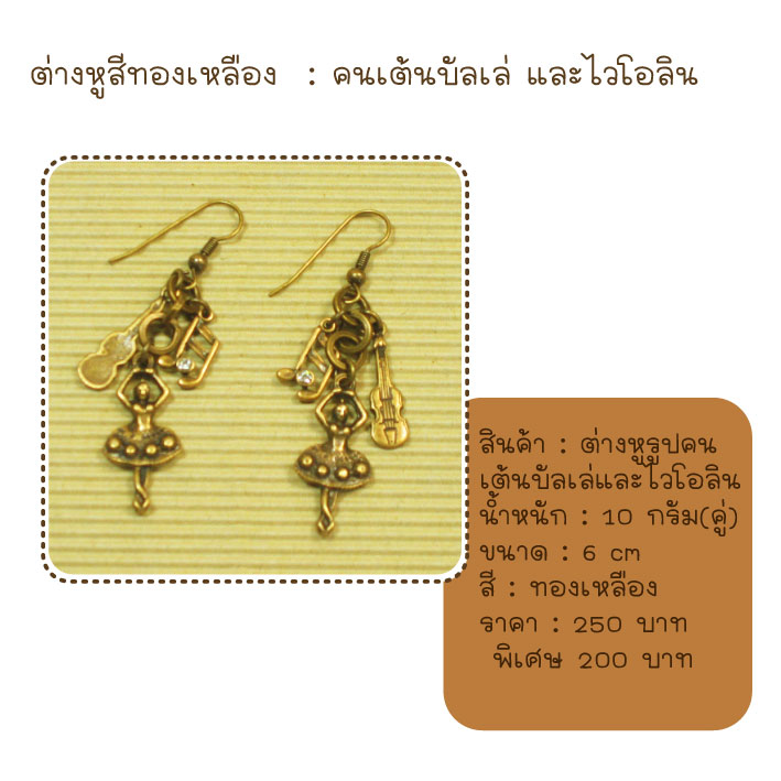 ต่างหูตุ้งติ้งคนเต้นบัลเลต์ สีทองเหลือง
