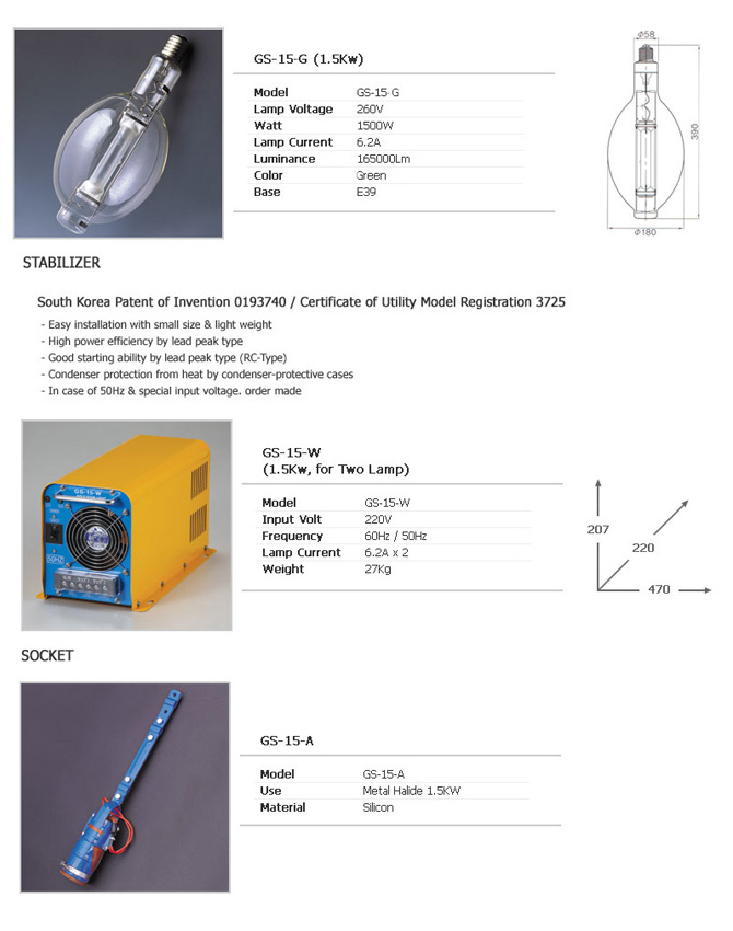 หลอดไฟ1500 1หลอด+ขั้ว 1อัน+บัลลาสต์ 1ตัว+คาปา1ตัว ต่อ1ชุด