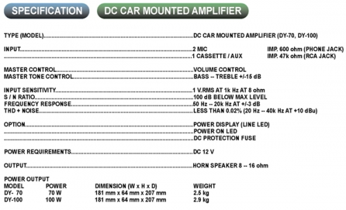 เครื่องขยายเสียงรถยนต์ MUSIC DY-100 100wใช้ไฟDC12V