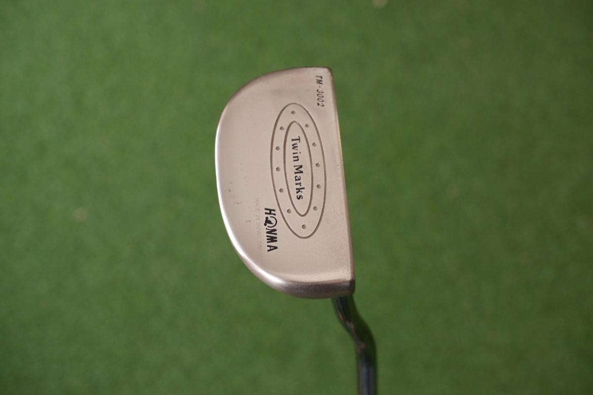 PUTTER HONMA TWIN MARKS TM-3002 PUTTER รูปทรง STANDARD พัตต์งาย ยาว 34 นิ้ว เป็นพัตเตอร์ที่มีลักษณะพิเศษเป็นเหล้กชินเดียวทั้งหัว ออกแบบมาอย่างลงตัว น้ำหนังดีสุดๆๆ putter มีลักษณะเป็นรูปครึ่งวงกลมมีเส้นเล้งที่เด้นชัด หน้าไม้มีการออกเเบบให้ประทะลูกกอล์
