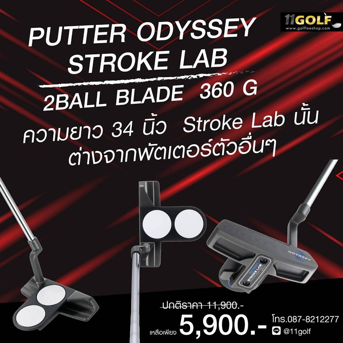 รหัสสินค้า "2100217442001 ไม้กอล์ฟพรีเมี่ยม!!! ราคาช๊อคตาค้าง!!! PUTTER ODYSSEY STROKE LAB 2BOLL 360 G ความยาว 34 นิ้ว Stroke Lab นั้นต่างจากพัตเตอร์ตัวอื่นๆ ในท้องตลาดที่ให้กับความสำคัญด้านการโรลลูก หรือดีไซน์ของหัวพัตเตอร์เป็นหลัก นั่นก็เพราะจากผลสำ