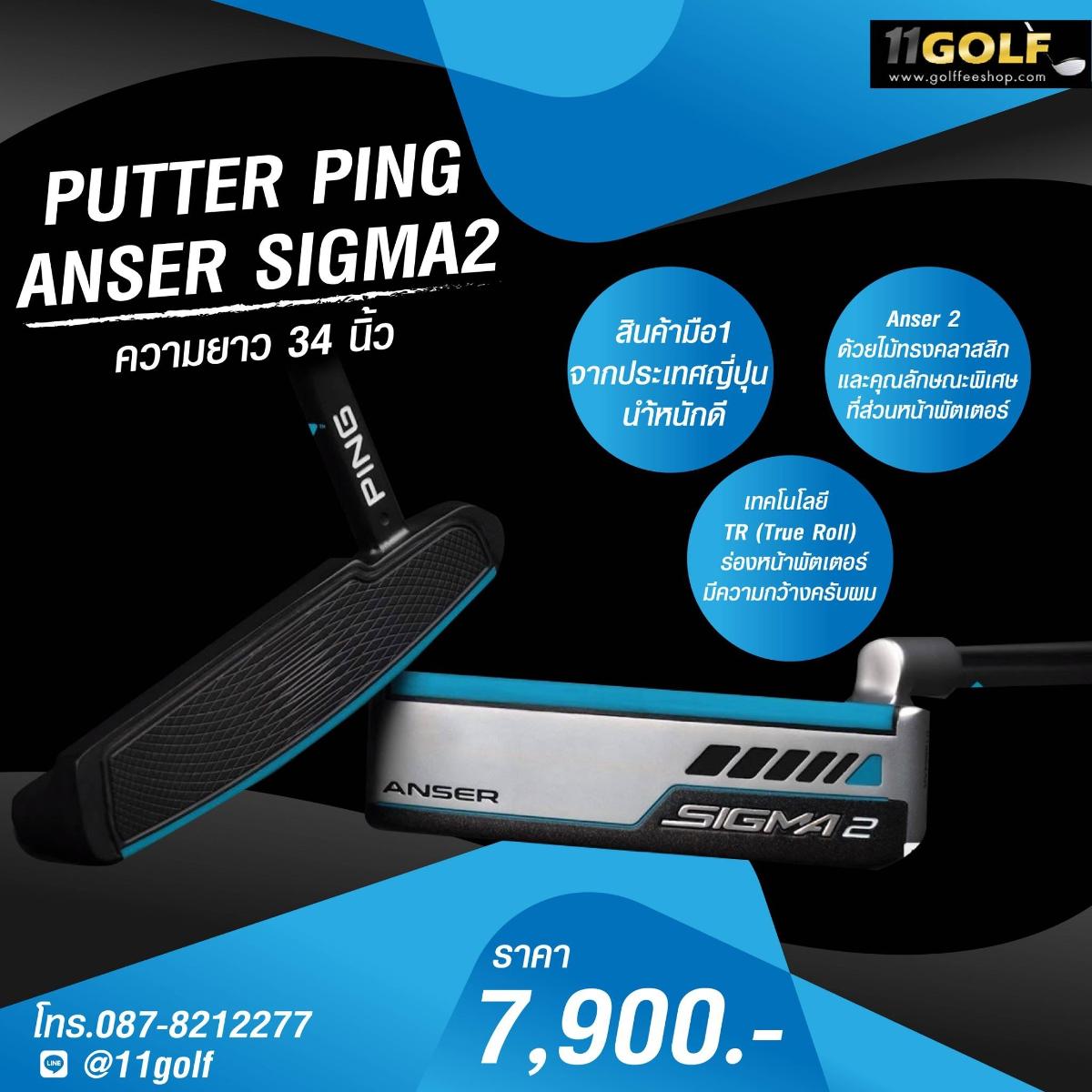 PUTTER PING ANSER SIGMA2 สินค้ามือ1 จากประเทศญี่ปุน ใหม่ในซีน ความยาวก้าน 34 นิ้ว Anser 2 ด้วยไม้ทรงคลาสสิก และคุณลักษณะพิเศษที่ส่วนหน้าพัตเตอร์ ด้วยเทคโนโลยี TR (True Roll) ร่องหน้าพัตเตอร์มีความกว้าง คอไม้แบบออฟเซ็ทก้าน และมีอัตราการหมุนของปลายเล็