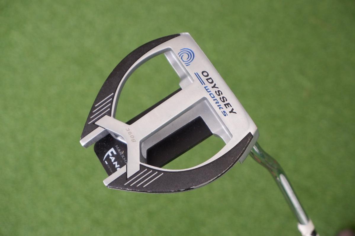 PUTTER ODYSSEY WORKS MARXMAN FANG สภาพนางฟ้า ความยาวก้าน 33 นิ้ว พัตเตอร์ที่ให้ความรู้สึกที่ดีเมื่อคุณพัตและสร้างลูกเล่น ที่แท้จริงที่คุณต้องการเพื่อให้ลูกบอลลงหลุมง่าย เทคโนโลยีถ่วงดุลทำได้โดยใช้หัวไม้และด้ามจับที่หนักกว่า เพื่อใช้ประโยชน์จากเทคโนโลยีถ่