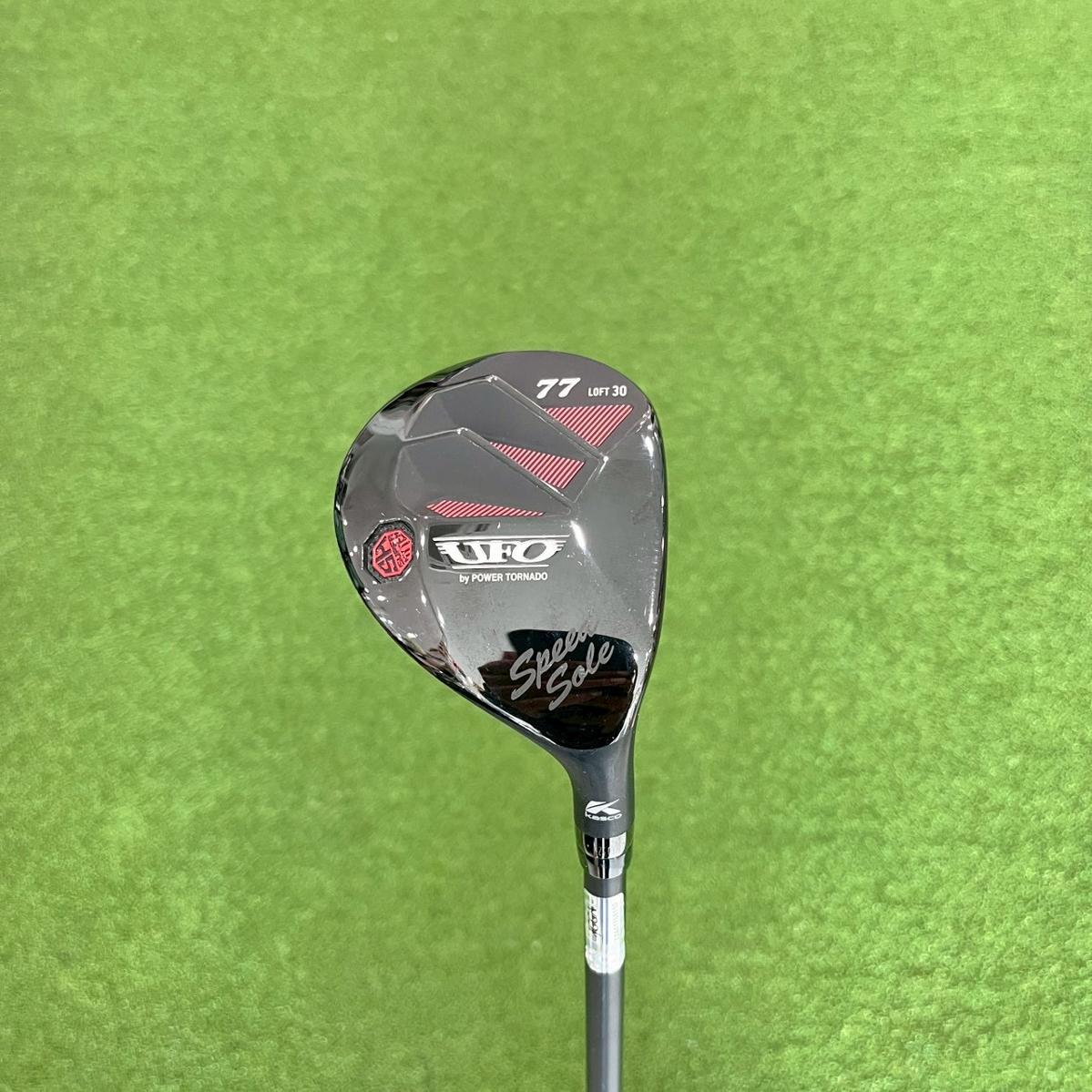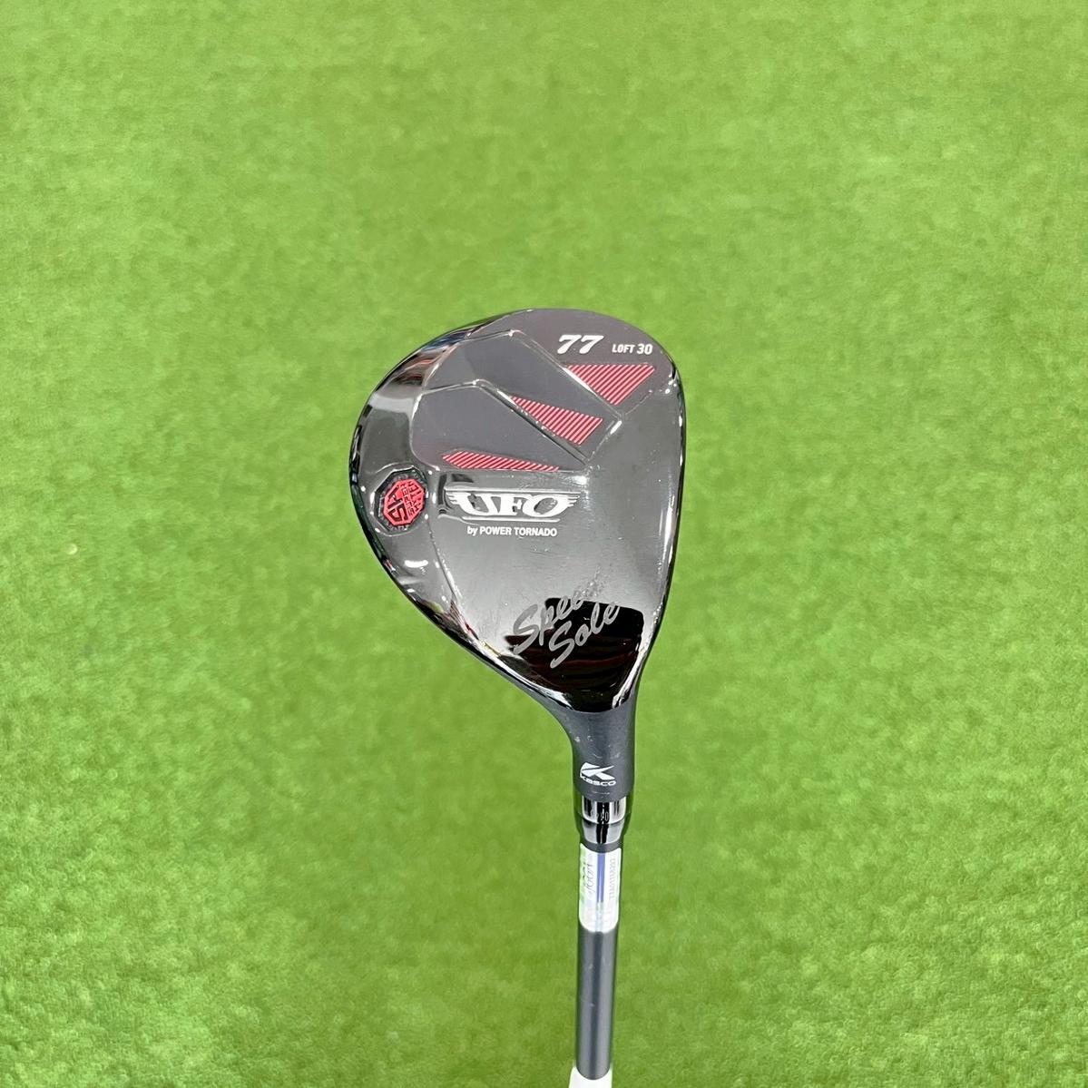 POWER TORNADO UFO SPEED 77 Falconshaft 50g tq 4.0 mk FLEX S loft 30 Kasco UFO Speed Power Tornado เป็นไม้ Hybrid (UFO) ที่ออกแบบมาเพื่อช่วยให้นักกอล์ฟตีลูกลอยง่ายและได้ระยะทางที่ไกลขึ้น โดยรุ่น SPEED 77 ขึ้นชื่อเรื่องหน้าไม้ที่เด้งและรูปทรงพิเศษที่ช่วยล