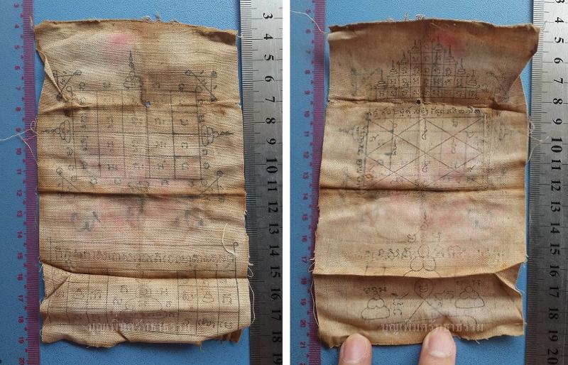 ผ้ายันต์เก่า ไม่ทราบที่ ไม่รู้ปี มีรอยจารหมึก เก่าจริง ตัวจริง.. บูชา 1,000 บาท