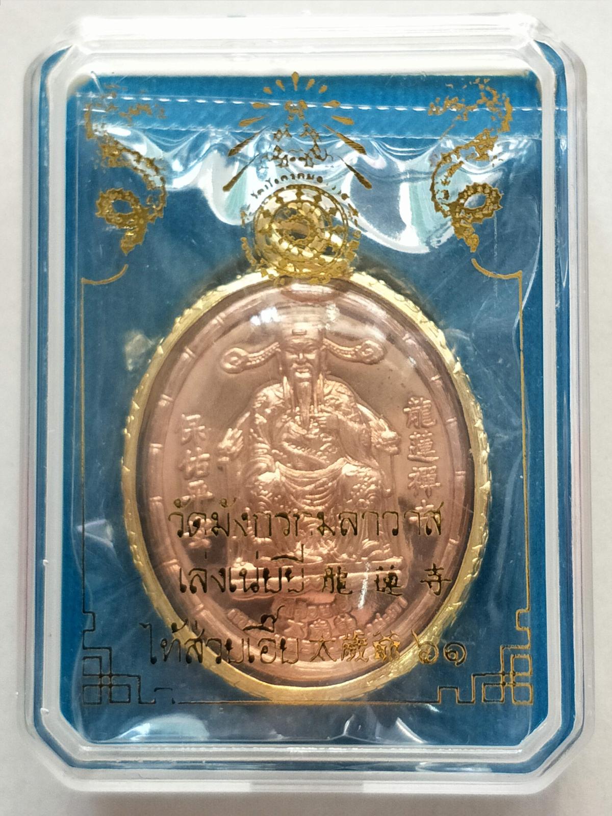 เหรียญเทพเจ้าจีน ไท้ส่วยเอี้ย พิมพ์เล็ก วัดมังกรกัมลาวาส เยาวราช ปี2561 เนื้อทองแดง กรอบทองไมครอนเดิ