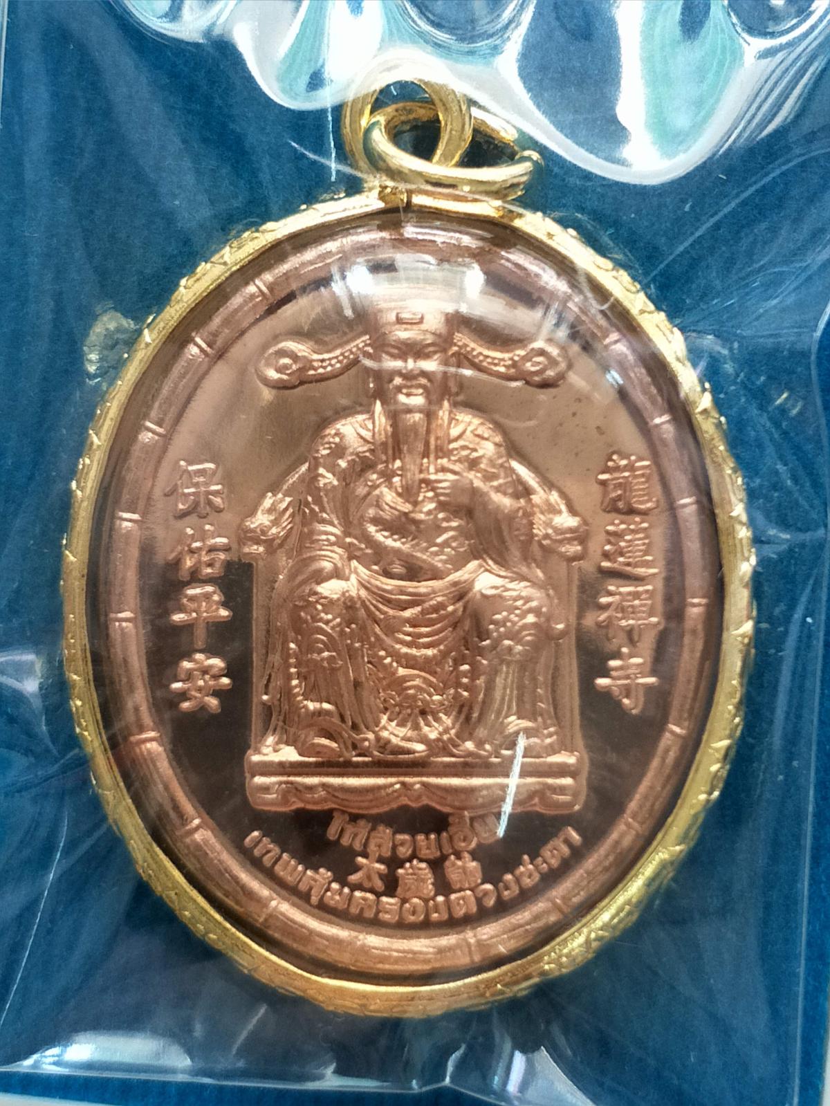 เหรียญเทพเจ้าจีน ไท้ส่วยเอี้ย พิมพ์ใหญ่ วัดมังกรกัมลาวาส เยาวราช ปี2561 เนื้อทองแดง กรอบทองไมครอนเดิ