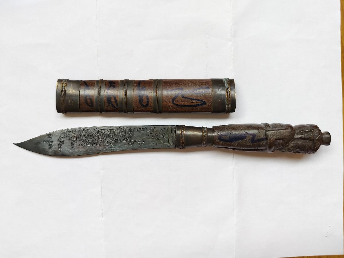 มีดครูด้ามพ่อปู่ฤๅษี ด้ามไม้ฝักไม้ วัดเลียบบำรุงราษฎร์ ปี2539 สร้างน้อย 108 ด้าม หลวงปู่สรวงร่วมเสก มีรอยจารรอยเจิม เดิมๆสุดขลัง สวยสุดหายากมาก