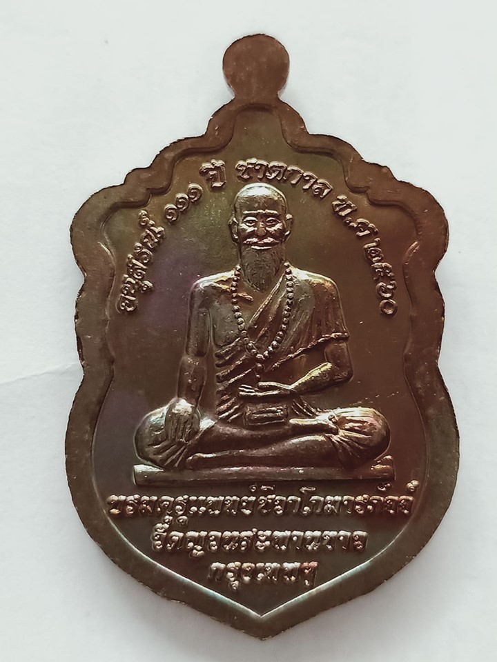เหรียญอนุสรณ์ 111 ชาตะกาล องสรภาณมธุรส บ๋าวเอิง วัดญวนสะพานขาว กรุงเทพฯ ปี 2560 บรมครูแพทย์พ่อปู่ชีวกโกมารภัจจ์ เนื้อทองประกายรุ้ง หมายเลข 255