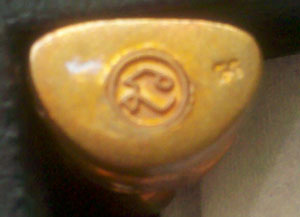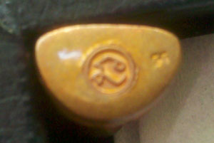หลวงพ่อไปล่รูปไข่รุ่น2หลังตอกโค๊ต วัดกำแพง กรุงเทพฯ เนื้อทองชนวน
