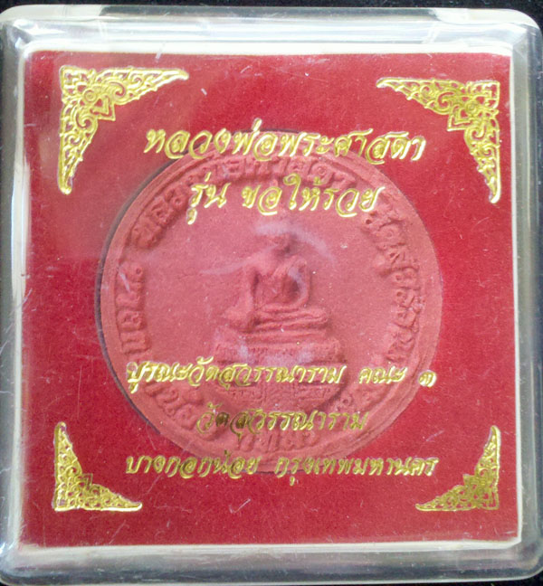 พระผงศาสดา วัดสุวรรณาราม บางกอกน้อย กรุงเทพฯ รุ่น ขอให้รวย เนื้อแดง สวยเดิมไม่ผ่านการบูชา